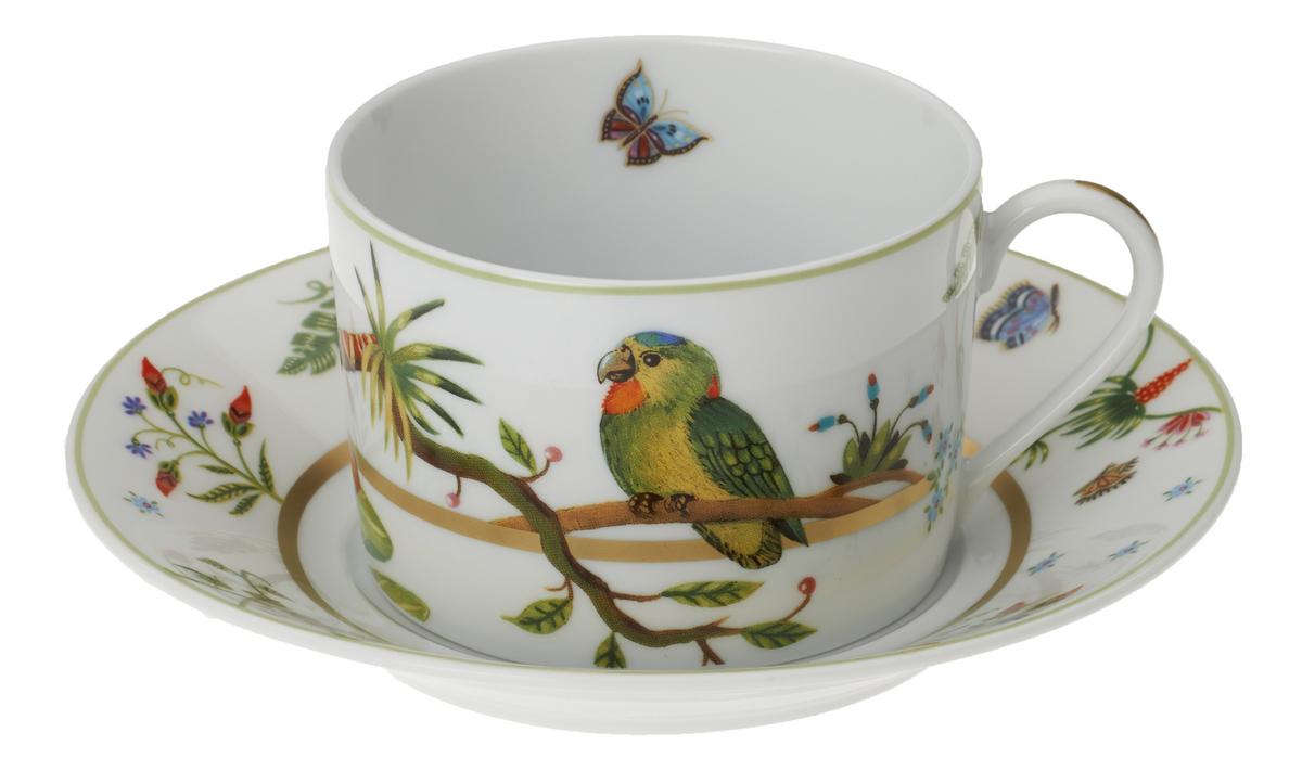 Das Tafelservice "Le Bestiaire" von Haviland zieren bunte Papageien, Schmetterlinge, Pflanzen und Orchideen. Der französische Künstler Alain Thomas hat diese wilde Tropenwelt gemalt. Mit seinem Motivreichtum und intensiven Farben ist das hochwertige Tafelservice "Le Bestiaire" von Haviland ein Tischkunstwerk, auf dem es immer wieder neues zu entdecken gibt. Es erzählt eine Geschichte — nur nicht, wie sonst üblich, auf Papier, sondern auf hochwertigem Limoges-Porzellan.