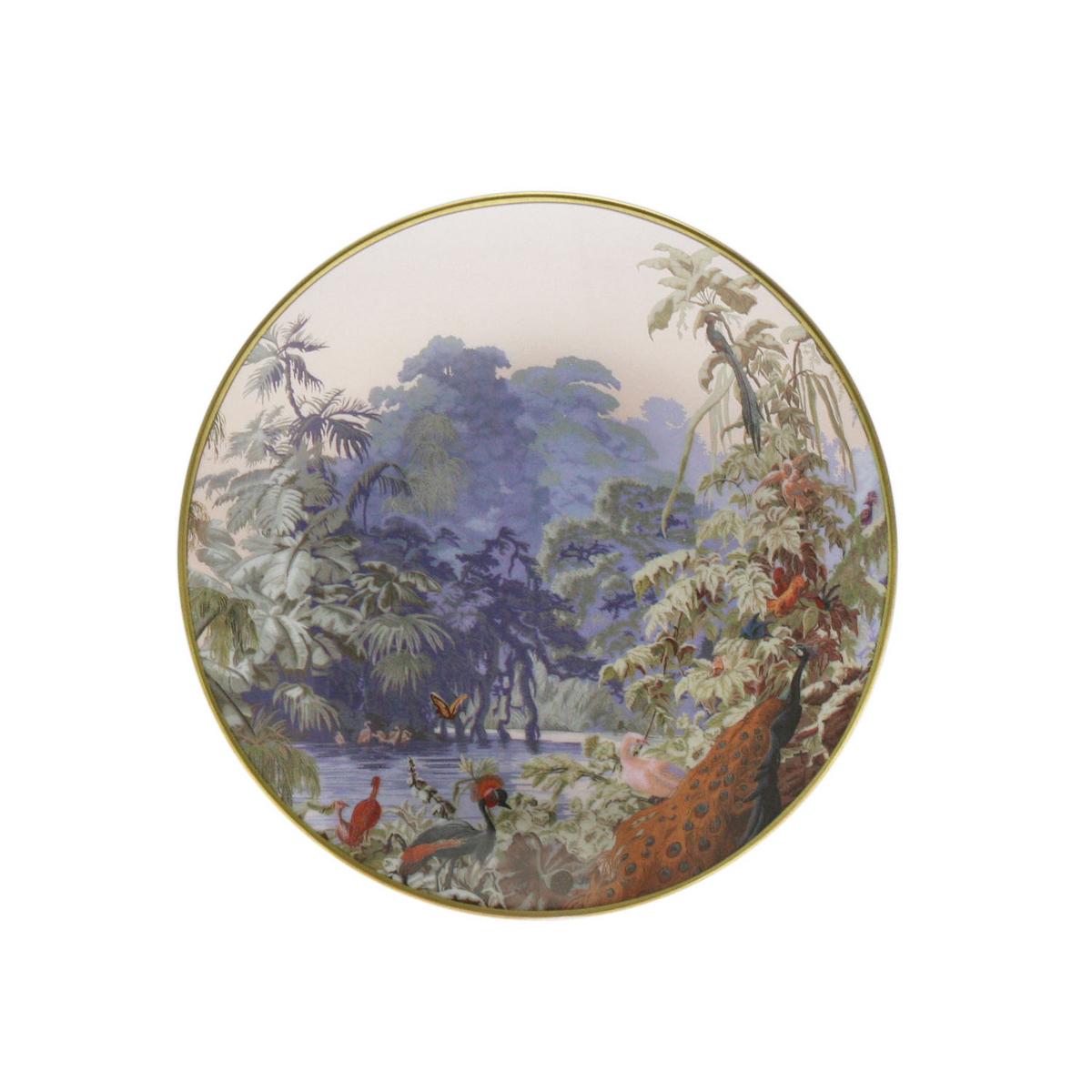 "Flora und Fauna. Auf dem Dessertteller aus der Kollektion Le Brésil tummeln sich exotische Tiere. Das Tafelservice aus Limoges-Porzellan entstand im Jahr 2013 durch die Zusammenarbeit von der Porzellanmanufaktur Haviland mit der Manufaktur Zuber."