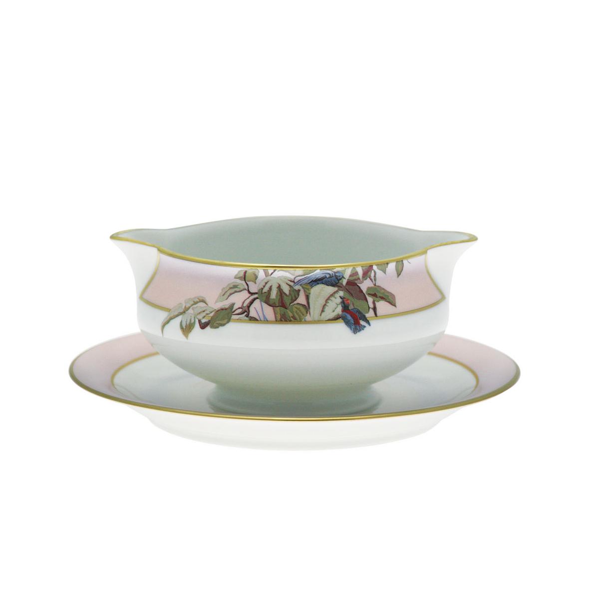"Flora und Fauna. Auf dem Dessertteller aus der Kollektion Le Brésil tummeln sich exotische Tiere. Das Tafelservice aus Limoges-Porzellan entstand im Jahr 2013 durch die Zusammenarbeit von der Porzellanmanufaktur Haviland mit der Manufaktur Zuber."