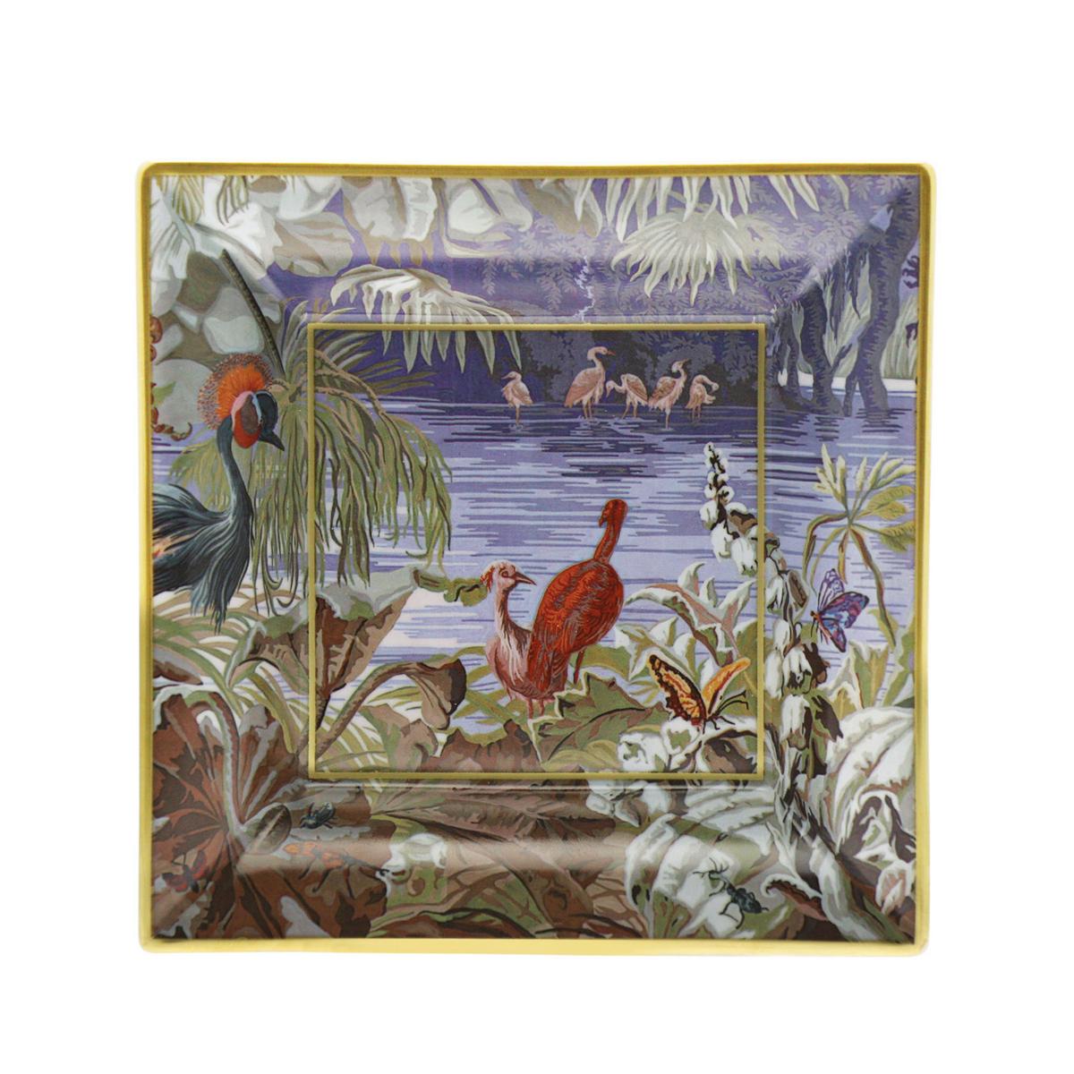 "Flora und Fauna. Auf dem Dessertteller aus der Kollektion Le Brésil tummeln sich exotische Tiere. Das Tafelservice aus Limoges-Porzellan entstand im Jahr 2013 durch die Zusammenarbeit von der Porzellanmanufaktur Haviland mit der Manufaktur Zuber."
