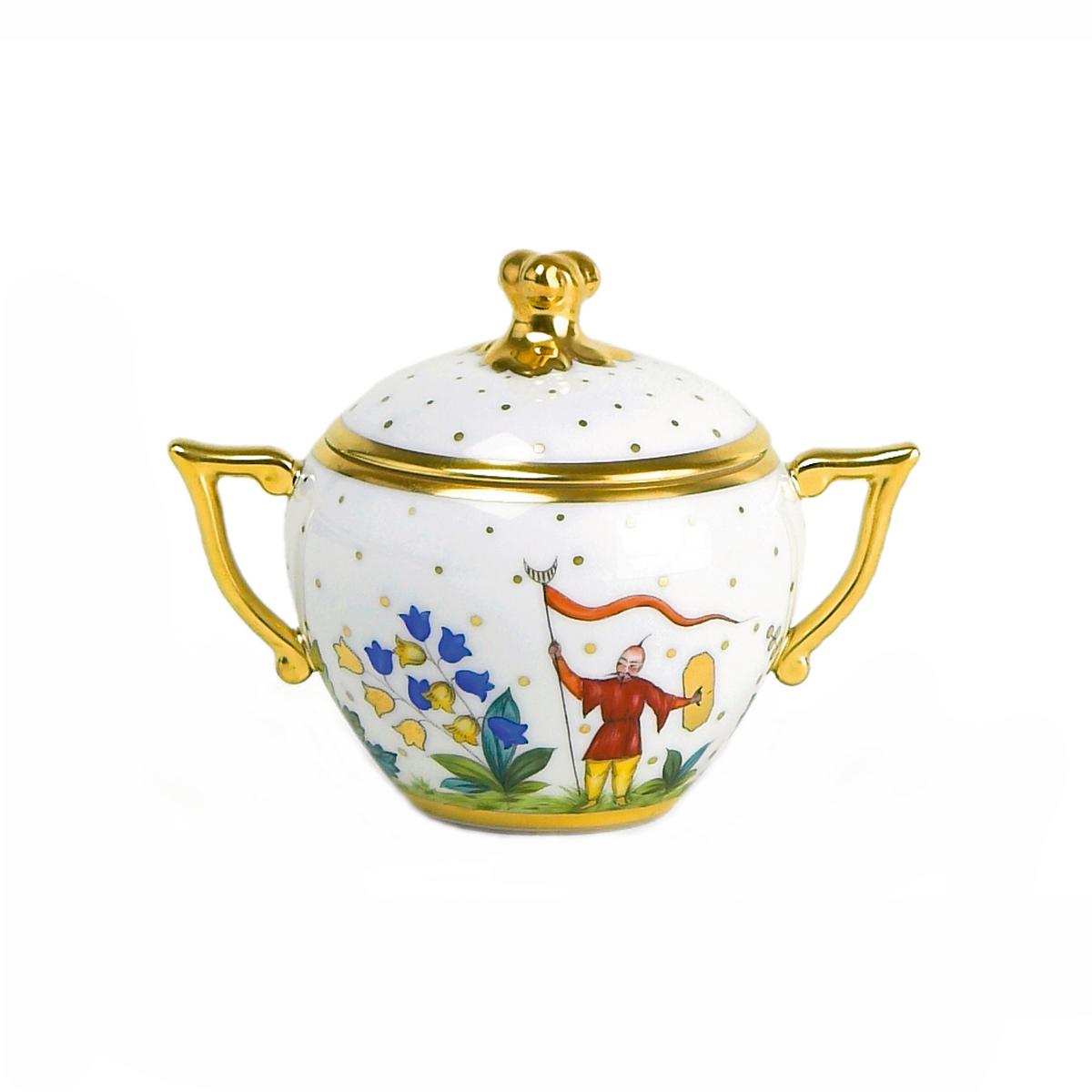 Ein fernöstlicher Traum in Porzellan und Gold. Das handbemalte Tafelservice "Forains d’Orient" der ungarischen Porzellanmanufaktur Herend kombiniert klassische asiatische Motive zu stimmungsvollen Arrangements. Herend präsentiert Menschen, Vögel, Drachen und reizvolle Pflanzen auf einem goldgesprenkelten Hintergrund. Prunkvoll umrahmt von opulenten Goldkanten und vergoldeten Henkeln. Auch die Ausgießer und Deckelknäufe der Kannen und Kännchen haben die Kunsthandwerker der ungarischen Porzellanlegende Herend aufwendig vergoldet.