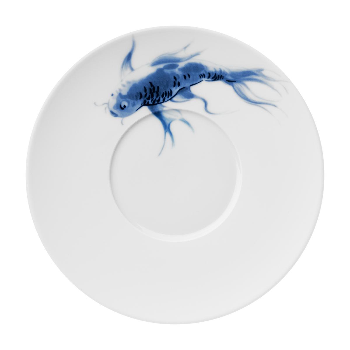 "Stilecht: Ein Heringsschwarm schmückt den Platzteller Ocean von Hering Berlin. Das wertvolle Biskuitporzellan wird von Hand hergestellt und ist spülmaschinenfest."