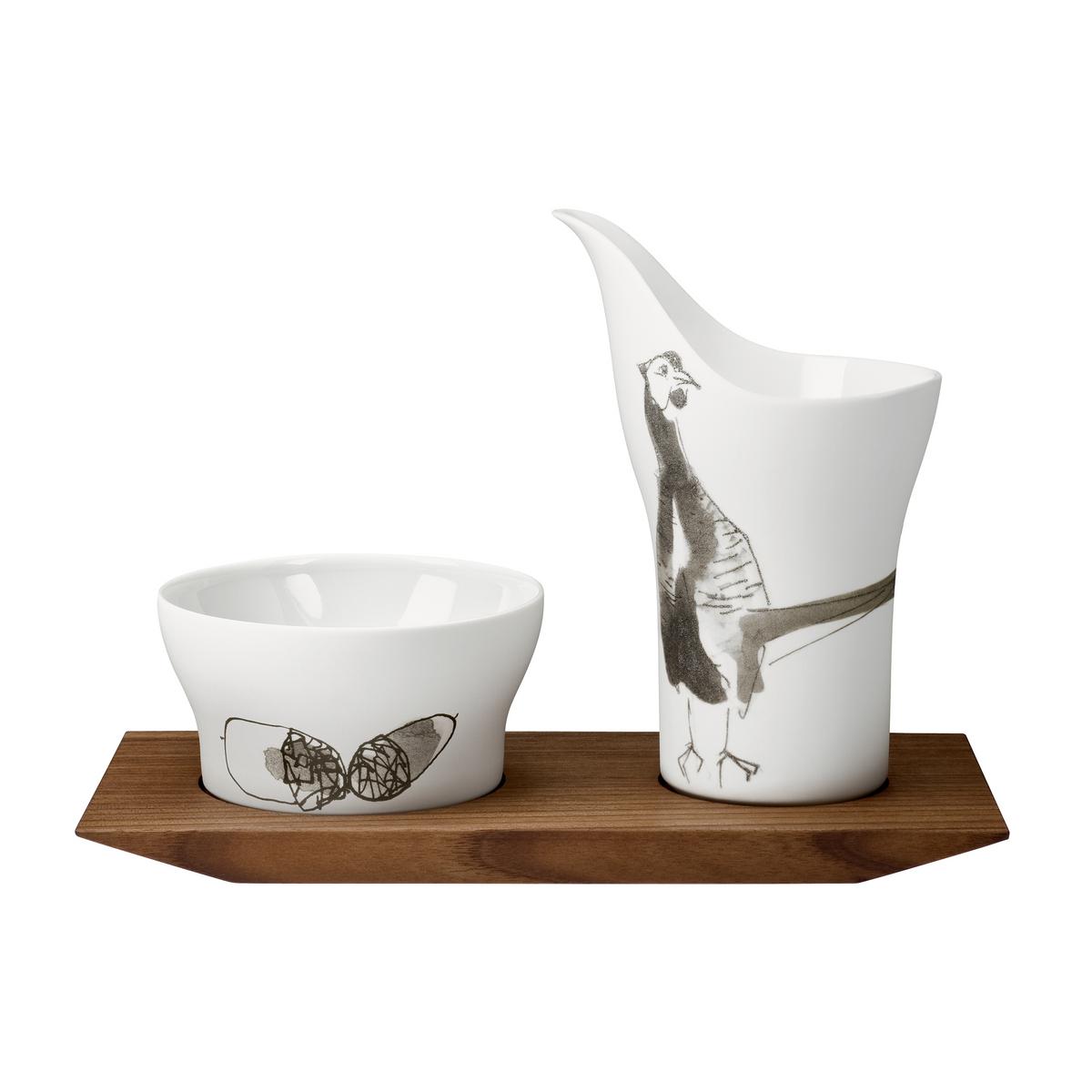 "Piqueur" Frühstücks-/Antipasti 2er-Set, auf Tablett, Motiv Fasan & Eicheln von Hering Berlin