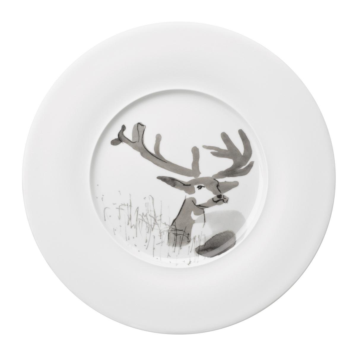 "Wildteller: Dies ist mal ein sympathisch röhrender Hirsch auf dem Desserteller aus der Serie Piqueur im Aquarellstil."