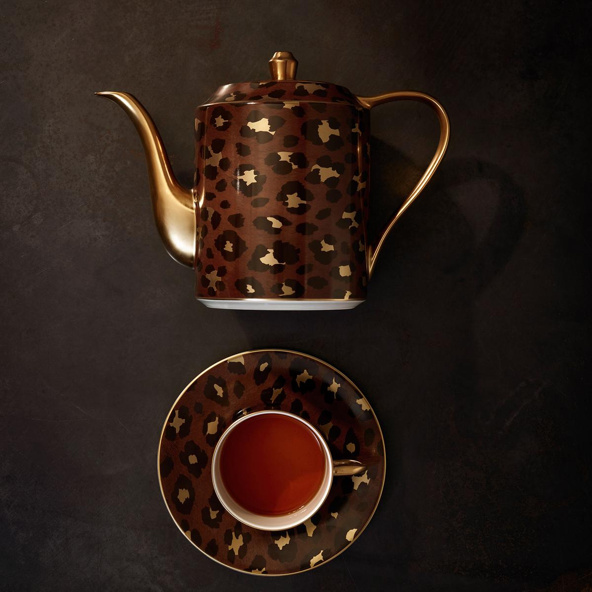 "Leopard" lässt sich zum Beispiel wunderschön mit der Serie "Alchimie Gold" von L'Objet kombinieren.