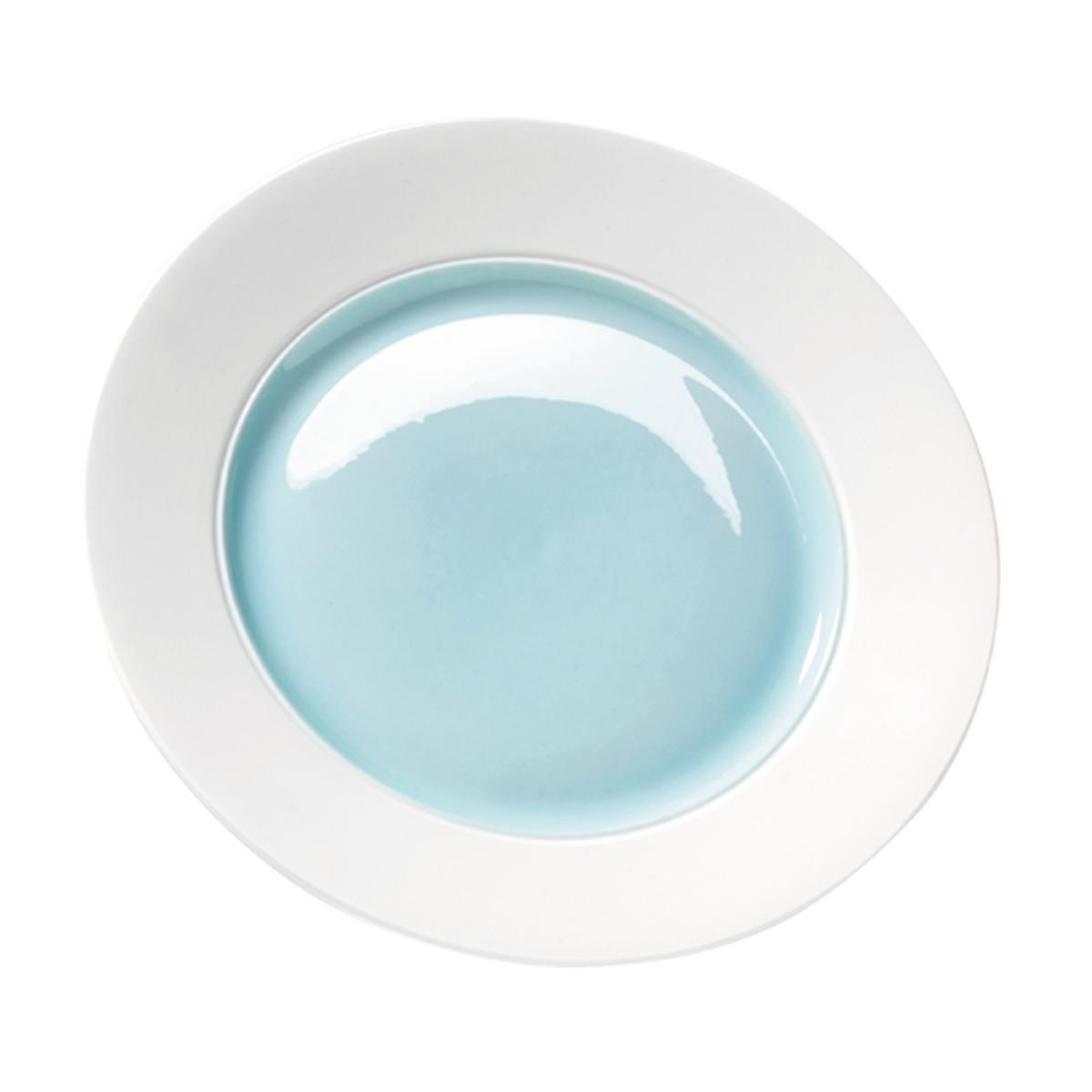 Die Teller "Lotos Aqua" von Nymphenburg wirken durch ihr Spiel aus weißem Biskuitporzellan und ihrer glänzenden Glasierung sommerlich und frisch. Der Spiegel der Teller "Lotos Aqua" ist in einem zarten Aquaton gehalten. Der Name ist von der wunderschönen Lotos-Blüte inspiriert. Aufgrund ihrer flüssigkeits- und schmutzabweisenden Blätter gilt die Lotos-Blüte im ostasiatischen Raum als Symbol der Reinheit. Dies spiegelt sich in der zarten Farbe des dünnwandigen, transluzent erscheinenden Porzellans wider.