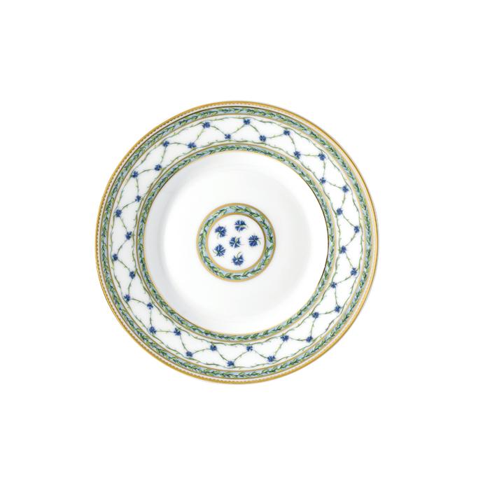 Die Vergangenheit nicht kopieren, sondern neu interpretieren, das ist die Maxime der Porzellanmanufaktur Raynaud. Bestes Beispiel hierfür ist das Service "Allée du Roy", das einem klassischen Dessin aus dem 18. Jahrhundert zu einer Renaissance verhilft.Traditionell sind die Veredelungen in Gold. Herrlich jung und frisch wirken dazu das leuchtende Grün und das dynamische Blau des Dekors. Die klare Linienführung der einzelnen Teile unterstützt das zeitgemäße Erscheinungsbild.