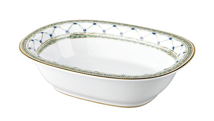 Die Vergangenheit nicht kopieren, sondern neu interpretieren, das ist die Maxime der Porzellanmanufaktur Raynaud. Bestes Beispiel hierfür ist das Service "Allée du Roy", das einem klassischen Dessin aus dem 18. Jahrhundert zu einer Renaissance verhilft.Traditionell sind die Veredelungen in Gold. Herrlich jung und frisch wirken dazu das leuchtende Grün und das dynamische Blau des Dekors. Die klare Linienführung der einzelnen Teile unterstützt das zeitgemäße Erscheinungsbild.