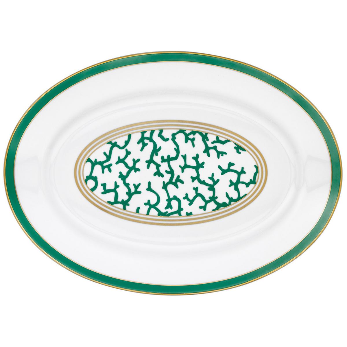 Die smaragdgrüne Farbe, die die ursprüngliche, korallenrote Kollektion ("Cristobal Koralle") und die ultramarinblaue Version ("Cristobal Marine") ergänzt, taucht in den Abgrund und die geheimnisvollen Meeresgründe ein. Mal ist es dicht und intensiv auf den Korallengriffen der Tassen oder auf den Knäufen der Teekannen, mal weich, kontrastreich, nuanciert und aquarelliert auf den mit Korallenmotiven verzierten Tellern. Sei es mit kleinen Akzenten auf dem Tisch oder in einer opulenten Inszenierung, Cristobal von Raynaud komponiert und erfindet Eleganz und Großzügigkeit neu; beides Aushängeschilder des begabten Dekorateurs.