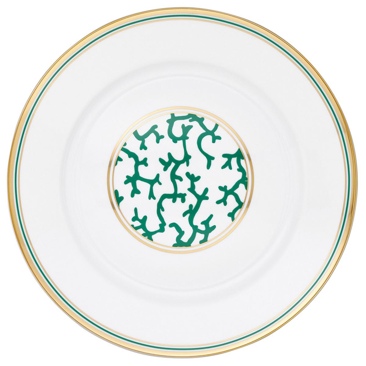 Die smaragdgrüne Farbe, die die ursprüngliche, korallenrote Kollektion ("Cristobal Koralle") und die ultramarinblaue Version ("Cristobal Marine") ergänzt, taucht in den Abgrund und die geheimnisvollen Meeresgründe ein. Mal ist es dicht und intensiv auf den Korallengriffen der Tassen oder auf den Knäufen der Teekannen, mal weich, kontrastreich, nuanciert und aquarelliert auf den mit Korallenmotiven verzierten Tellern. Sei es mit kleinen Akzenten auf dem Tisch oder in einer opulenten Inszenierung, Cristobal von Raynaud komponiert und erfindet Eleganz und Großzügigkeit neu; beides Aushängeschilder des begabten Dekorateurs.