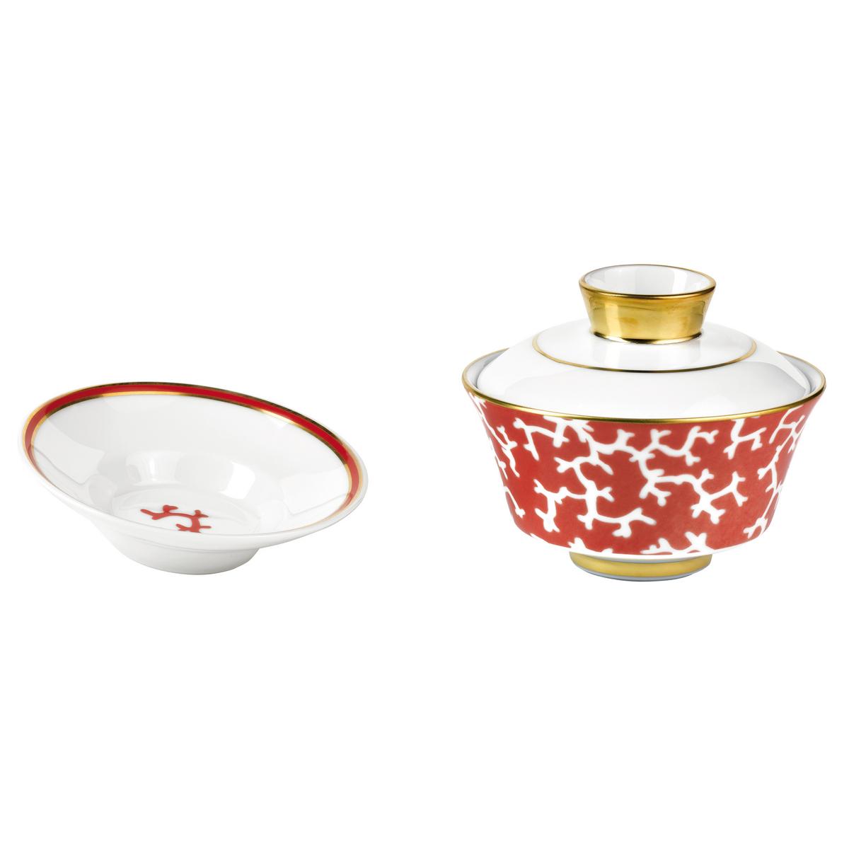 "Cristobal Koralle" chinesisches Teeset (chinesische Teetasse mit Deckel und Unterteller) von Raynaud