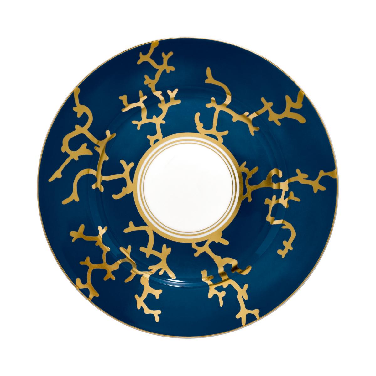 "Cristobal Marine" von Raynaud verschönert Ihren gedeckten Tisch mit organischen Formen und intensiven Farbtönen. Diese Variation des beliebten Raynaud-Dekors "Cristobal Koralle" feiert Alberto Pintos berühmte verzweigte Korallenform in einer weiteren Verwandlung. In vielfältigen Kombinationen von Marineblau, sattem Gold und frischem Weiß entfaltet sich Pintos zarte Korallenstruktur. Die faszinierende Wirkung auf Tellern, Tassen und Platten des Porzellans "Cristobal Marine" von Raynaud macht dieses Tafelservice des Traditionsunternehmens zu einem jungen Klassiker.