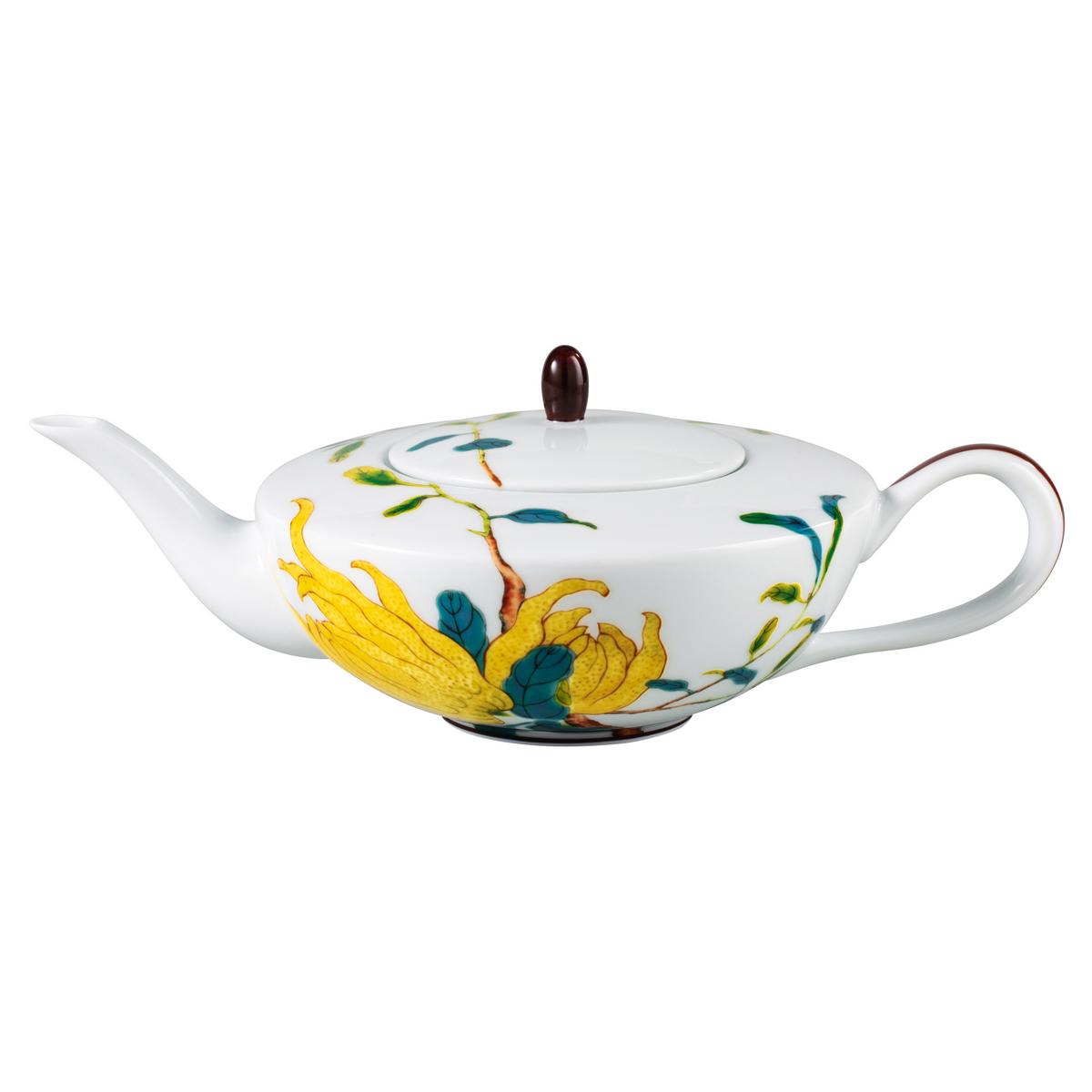 Voller Charme präsentiert sich das Service "Harmonia" von Raynaud. Das naturalistische Dekor ist angelehnt an das goldene chinesische Zeitalter. Die Ursprünge des Designs reichen bis ins 18. Jahrhundert an den chinesischen Kaiserhof zurück. Drei florale Inspirationen der folgenden Fruchtbäume sind das Hauptthema der Kollektion "Harmonia": eine sich öffnende Granatapfelfrucht, Granatapfelblüten und eine abgewandelte Form der Zitronenfrucht - besser bekannt als "Buddhas Hand". Die frischen Farben auf dem Service "Harmonia" inszenieren Gastlichkeit mit der Leichtigkeit eines Frühsommertages.