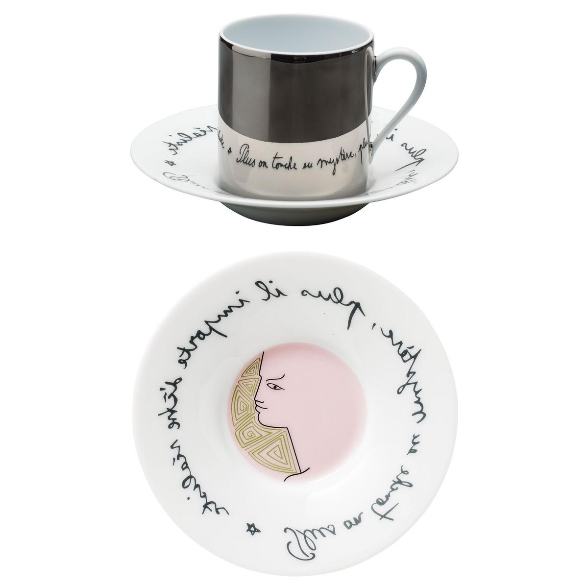 Eine wunderbare Andeutung auf Cocteaus Sinn für Humor und seinen Einfluss auf den Surrealismus ist die einzigartige Umsetzung der Espressotassen. Auf den mit verspiegelten Platin-Lack veredelten Tassen werden Zitate des Dichters gespiegelt, welche auf der Untertasse in Spiegelschrift geschrieben sind.