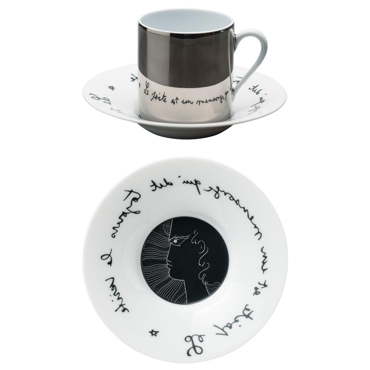 "Jean Cocteau" Espressotasse (außen Vollplatin) mit Unterteller, Le Gabier de Vigie von Raynaud