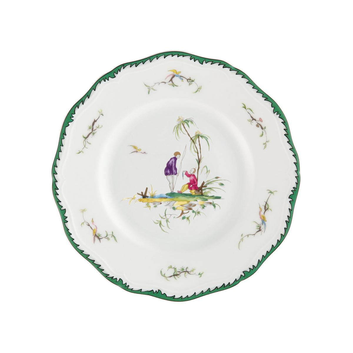 Das "Longjiang" von Raynaud ist der Nachfolger der Linie "Si Kiang". Das Service ist mit einem Rand in Grün eingerahmt, die Fahne ist ohne das Korbgeflecht-Muster etwas schlichter als der Vorgänger gehalten.