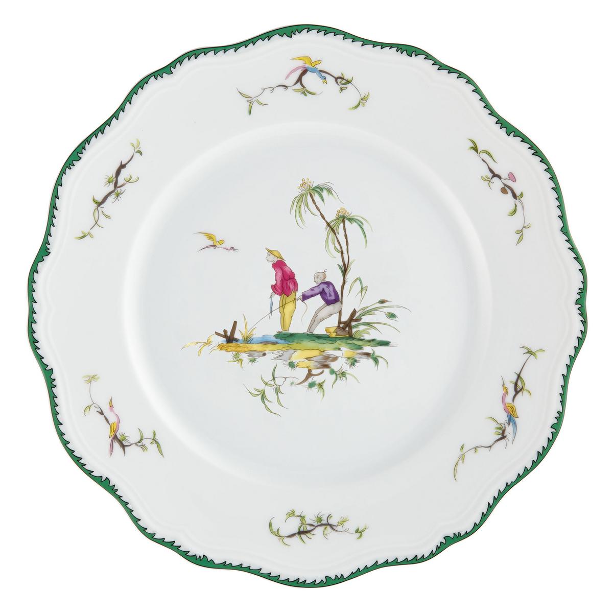 Das "Longjiang" von Raynaud ist der Nachfolger der Linie "Si Kiang". Das Service ist mit einem Rand in Grün eingerahmt, die Fahne ist ohne das Korbgeflecht-Muster etwas schlichter als der Vorgänger gehalten.