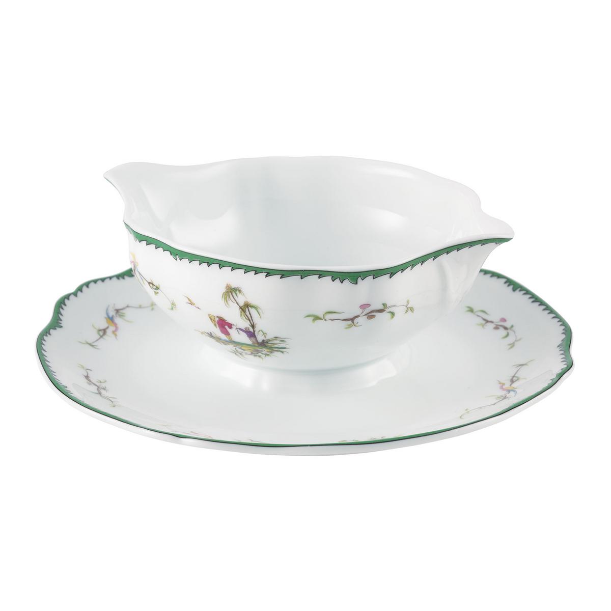 Das "Longjiang" von Raynaud ist der Nachfolger der Linie "Si Kiang". Das Service ist mit einem Rand in Grün eingerahmt, die Fahne ist ohne das Korbgeflecht-Muster etwas schlichter als der Vorgänger gehalten.