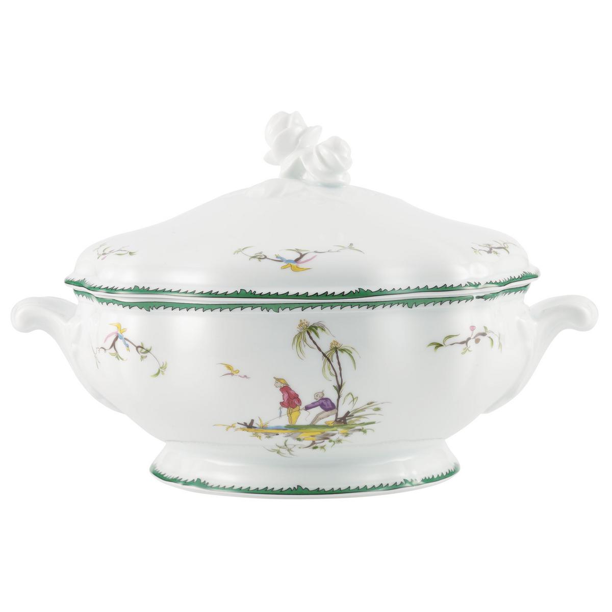 Das "Longjiang" von Raynaud ist der Nachfolger der Linie "Si Kiang". Das Service ist mit einem Rand in Grün eingerahmt, die Fahne ist ohne das Korbgeflecht-Muster etwas schlichter als der Vorgänger gehalten.