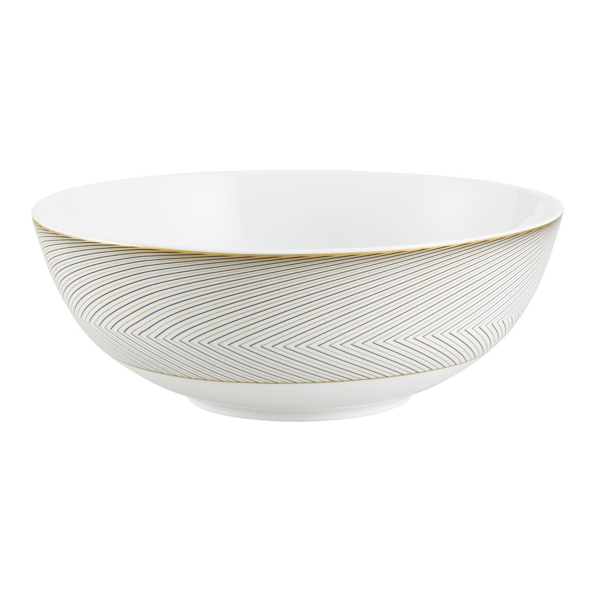 "Oskar" von Raynaud verzaubert die Sinne mit seinem grandiosen geometrischen Design – vor allem der Sehsinn wird herausgefordert und angeregt. Sehr feine Linien in den Farben Schwarz und Gold zieren das weiße Limoges-Porzellan von Raynaud. Wenn man jeden Teller "Oskar" ganz genau betrachtet fällt auf, dass das geometrische Muster immer leicht variiert wird. Das ist genauso gewollt von der Designerin Mariela Schwarz Montiel, die bereits viele Service für Raynaud entworfen hat. Die meisten Teller ziert ein goldener Fixpunkt in der Mitte, der das auffällige Linienmuster fixiert.