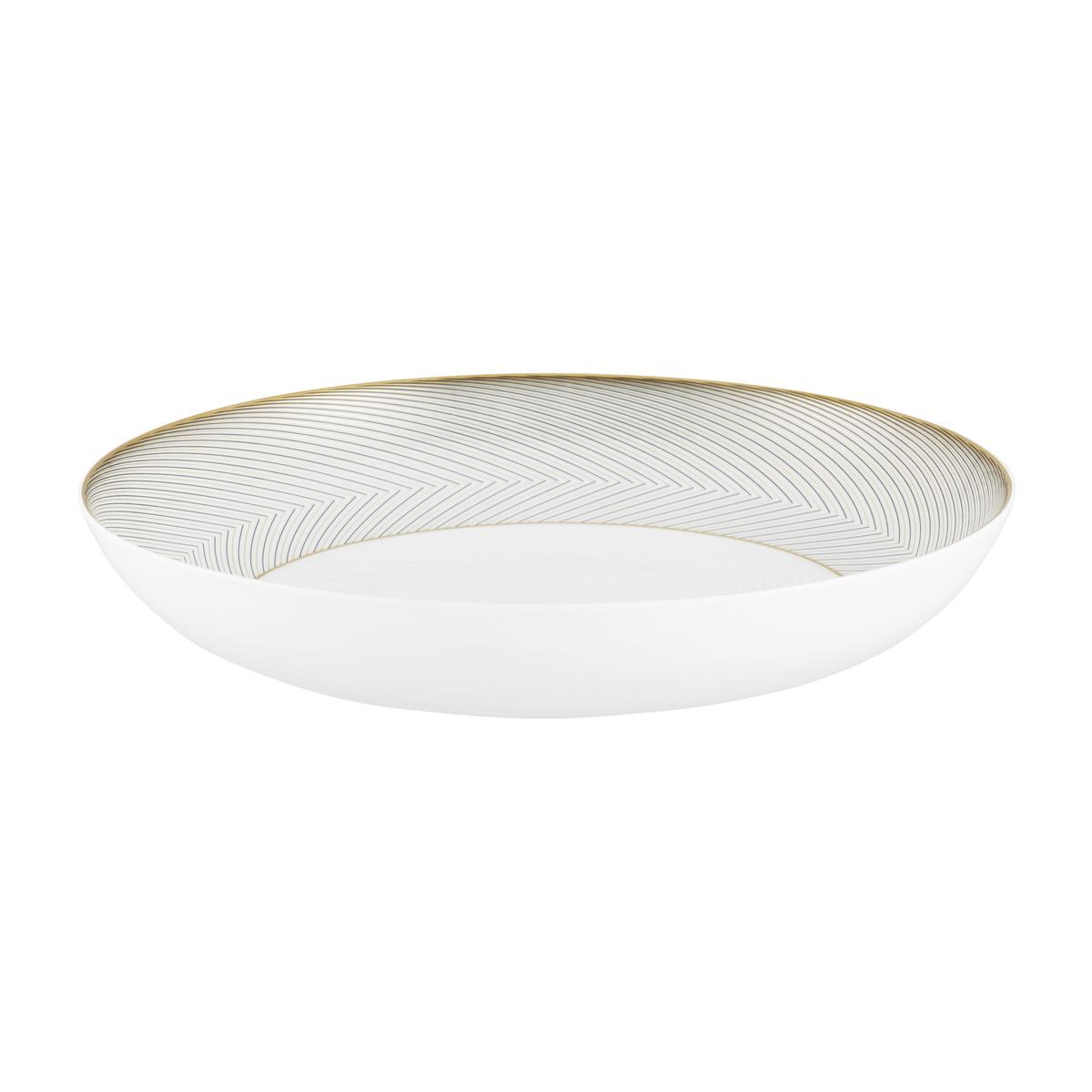 "Oskar" von Raynaud verzaubert die Sinne mit seinem grandiosen geometrischen Design – vor allem der Sehsinn wird herausgefordert und angeregt. Sehr feine Linien in den Farben Schwarz und Gold zieren das weiße Limoges-Porzellan von Raynaud. Wenn man jeden Teller "Oskar" ganz genau betrachtet fällt auf, dass das geometrische Muster immer leicht variiert wird. Das ist genauso gewollt von der Designerin Mariela Schwarz Montiel, die bereits viele Service für Raynaud entworfen hat. Die meisten Teller ziert ein goldener Fixpunkt in der Mitte, der das auffällige Linienmuster fixiert.