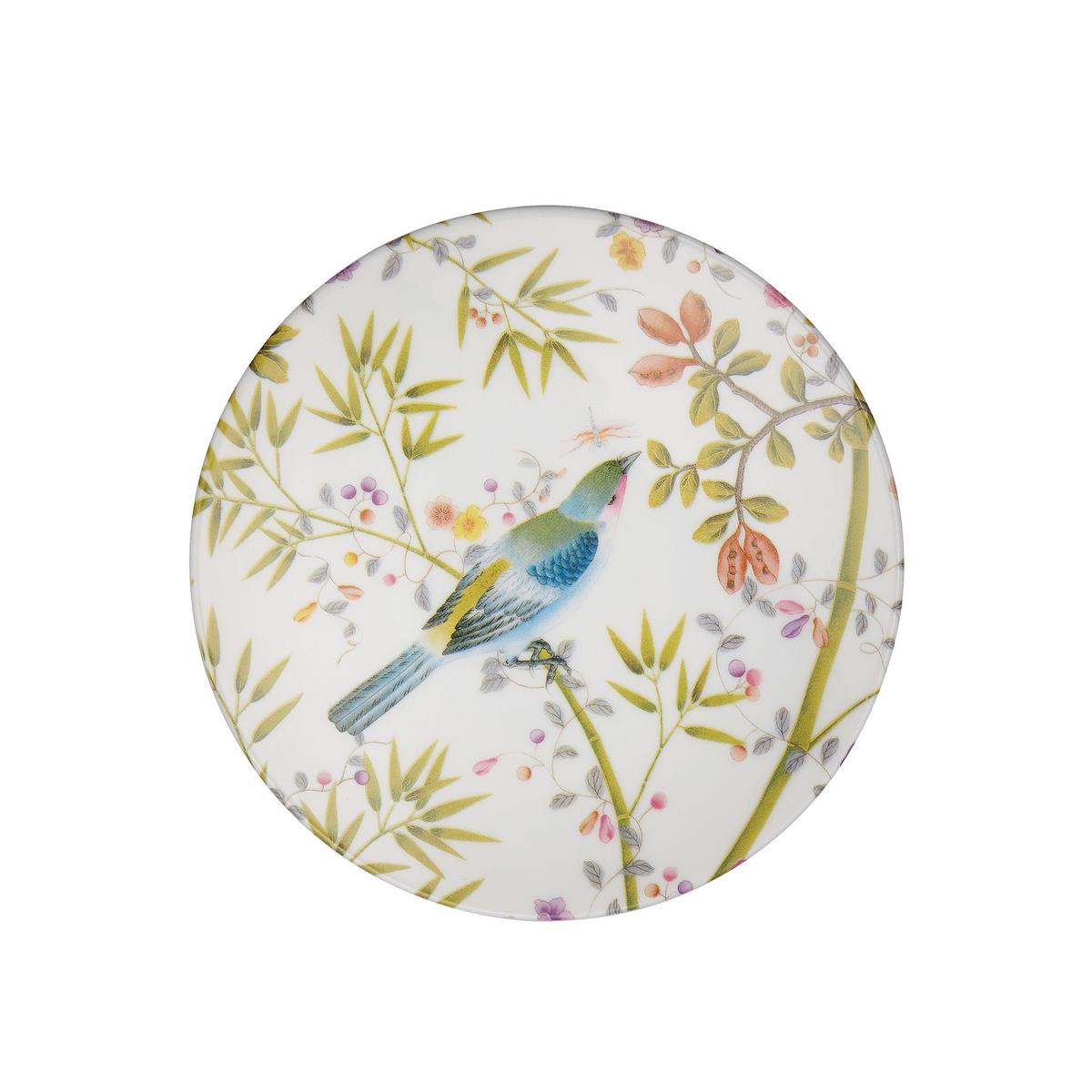 Das Porzellanservice "Paradis" entstand durch die Zusammenarbeit der französischen Porzellanmanufaktur Raynaud mit dem britischen Interior Design Unternehmen Fromental. Die britische Firma zaubert "Haute Couture Mode" für Wände d.h. es produziert luxuriöse Wandtapeten. Versierte Künstler brauchen mehrere hundert Stunden, um diese aufwendig bestickten Wandtapeten herzustellen. Als Inspirationsquelle für das Limoges-Porzellan Service "Paradis" dienten sog. "Chinoiserie" Papiertapeten des britischen Labels.