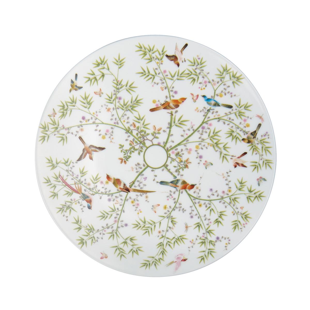 Das Porzellanservice "Paradis" entstand durch die Zusammenarbeit der französischen Porzellanmanufaktur Raynaud mit dem britischen Interior Design Unternehmen Fromental. Die britische Firma zaubert "Haute Couture Mode" für Wände d.h. es produziert luxuriöse Wandtapeten. Versierte Künstler brauchen mehrere hundert Stunden, um diese aufwendig bestickten Wandtapeten herzustellen. Als Inspirationsquelle für das Limoges-Porzellan Service "Paradis" dienten sog. "Chinoiserie" Papiertapeten des britischen Labels.