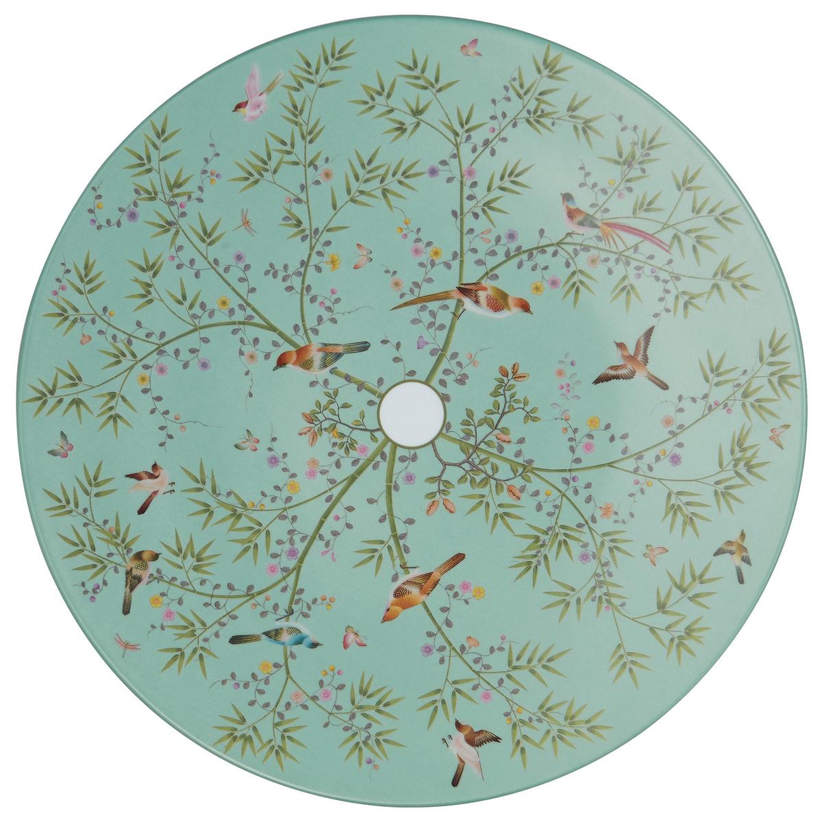 Das Porzellanservice "Paradis" entstand durch die Zusammenarbeit der französischen Porzellanmanufaktur Raynaud mit dem britischen Interior Design Unternehmen Fromental. Die britische Firma zaubert "Haute Couture Mode" für Wände d.h. es produziert luxuriöse Wandtapeten. Versierte Künstler brauchen mehrere hundert Stunden, um diese aufwendig bestickten Wandtapeten herzustellen. Als Inspirationsquelle für das Limoges-Porzellan Service "Paradis" dienten sog. "Chinoiserie" Papiertapeten des britischen Labels.