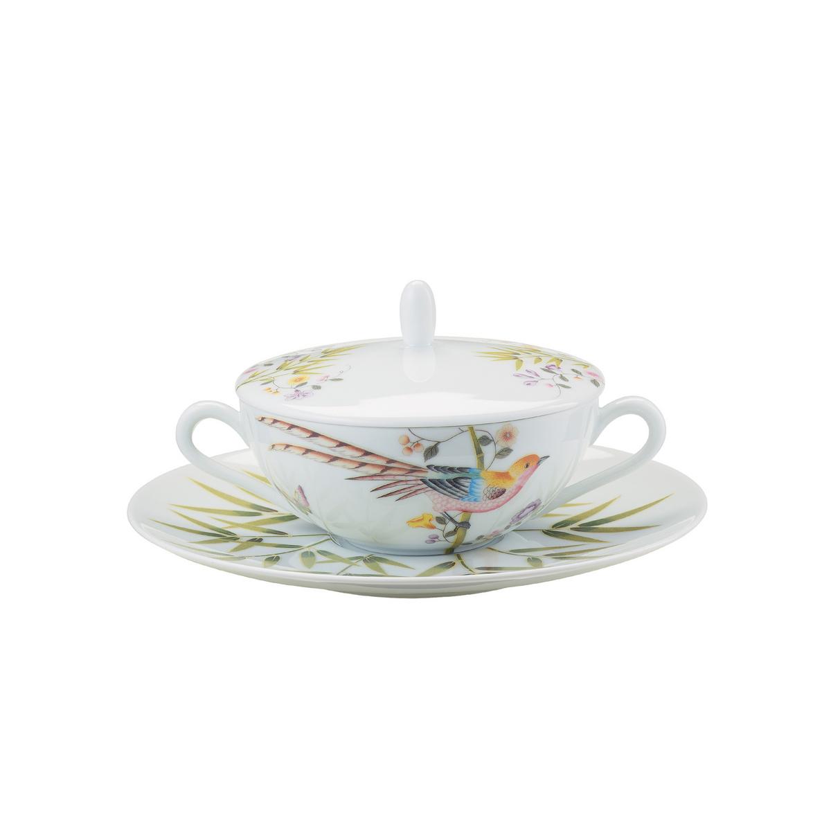 "Paradis" Suppentasse mit Unterteller und Deckel, weiß von Raynaud