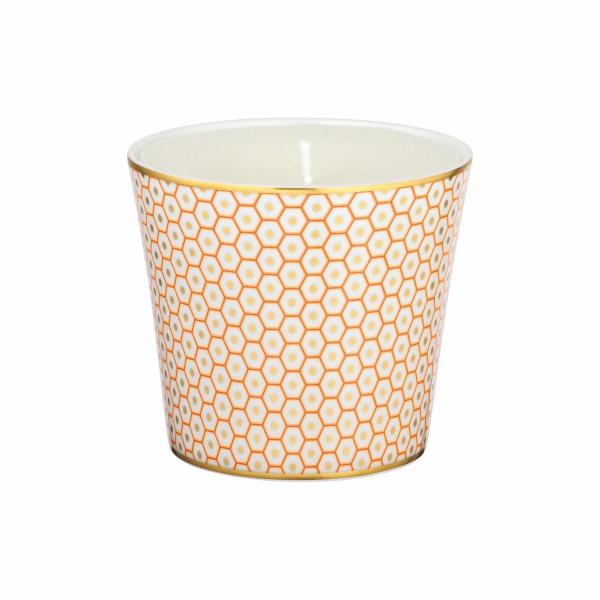 "Trésor" Kerzenhalter mit Duftkerze, Wabenmuster, orange von Raynaud
