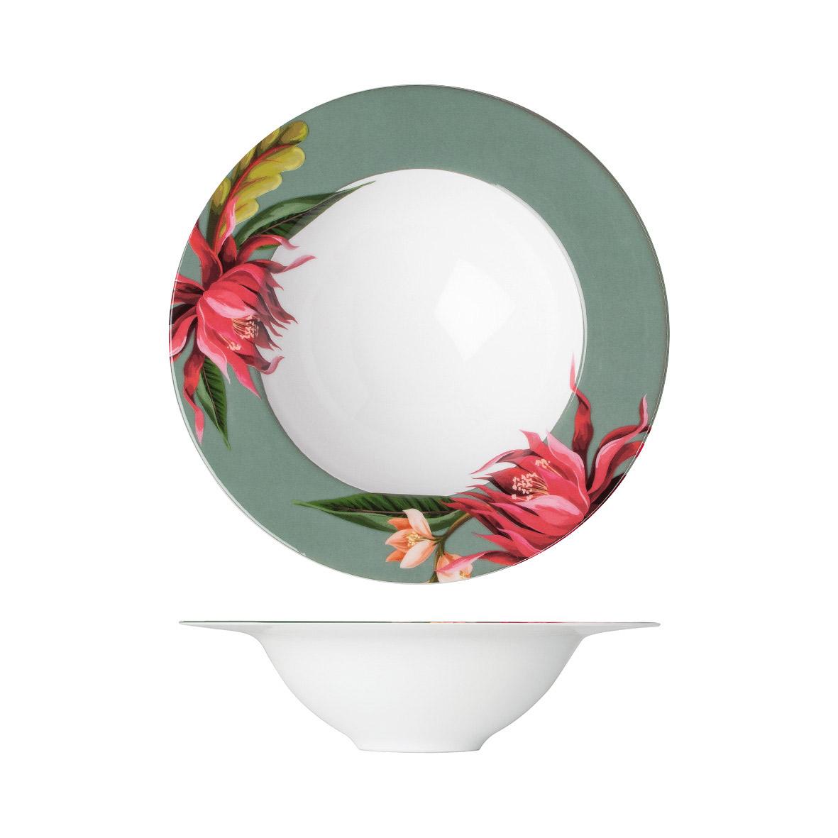 "Paraiso" von Sieger by Fürstenberg ist eine Hommage an die Schönheit der Erde, den Reichtum der Natur und die Vielfalt der Kulturen. Mit fantasievollen Formen und viel Farbe bringt das Tafelservice verschiedener Kontinente auf den Tisch. So verbinden sich asiatische Pfingstrosen mit traditionell mallorquinischen Webmustern, portugiesisch inspirierten Ornamenten und tropischen Pflanzen.