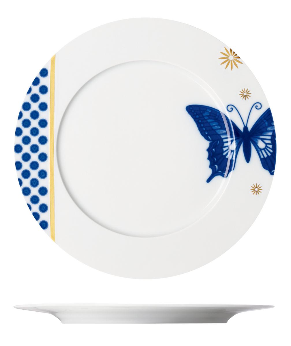 Das Tafelservice "Wunderkammer" von Sieger by Fürstenberg nimmt seine Betrachter mit auf eine fantastische Reise. In einem wundervollen Blauton sind Blumen und Schmetterlinge gestaltet, die sich um geometrische Figuren wie den Sieger Stern oder perfekt geformte Kreise ranken.