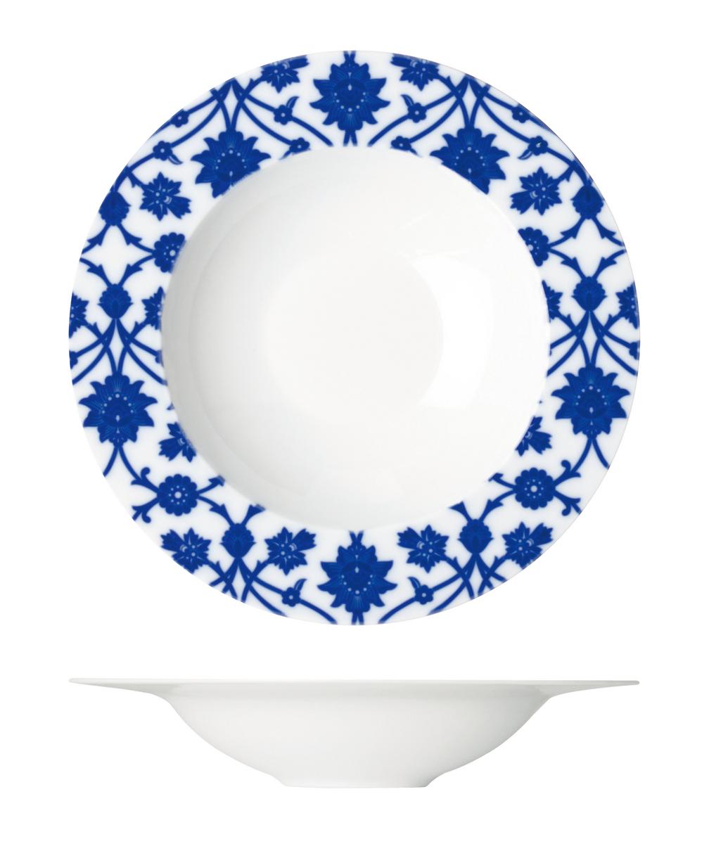 Das Tafelservice "Wunderkammer" von Sieger by Fürstenberg nimmt seine Betrachter mit auf eine fantastische Reise. In einem wundervollen Blauton sind Blumen und Schmetterlinge gestaltet, die sich um geometrische Figuren wie den Sieger Stern oder perfekt geformte Kreise ranken.