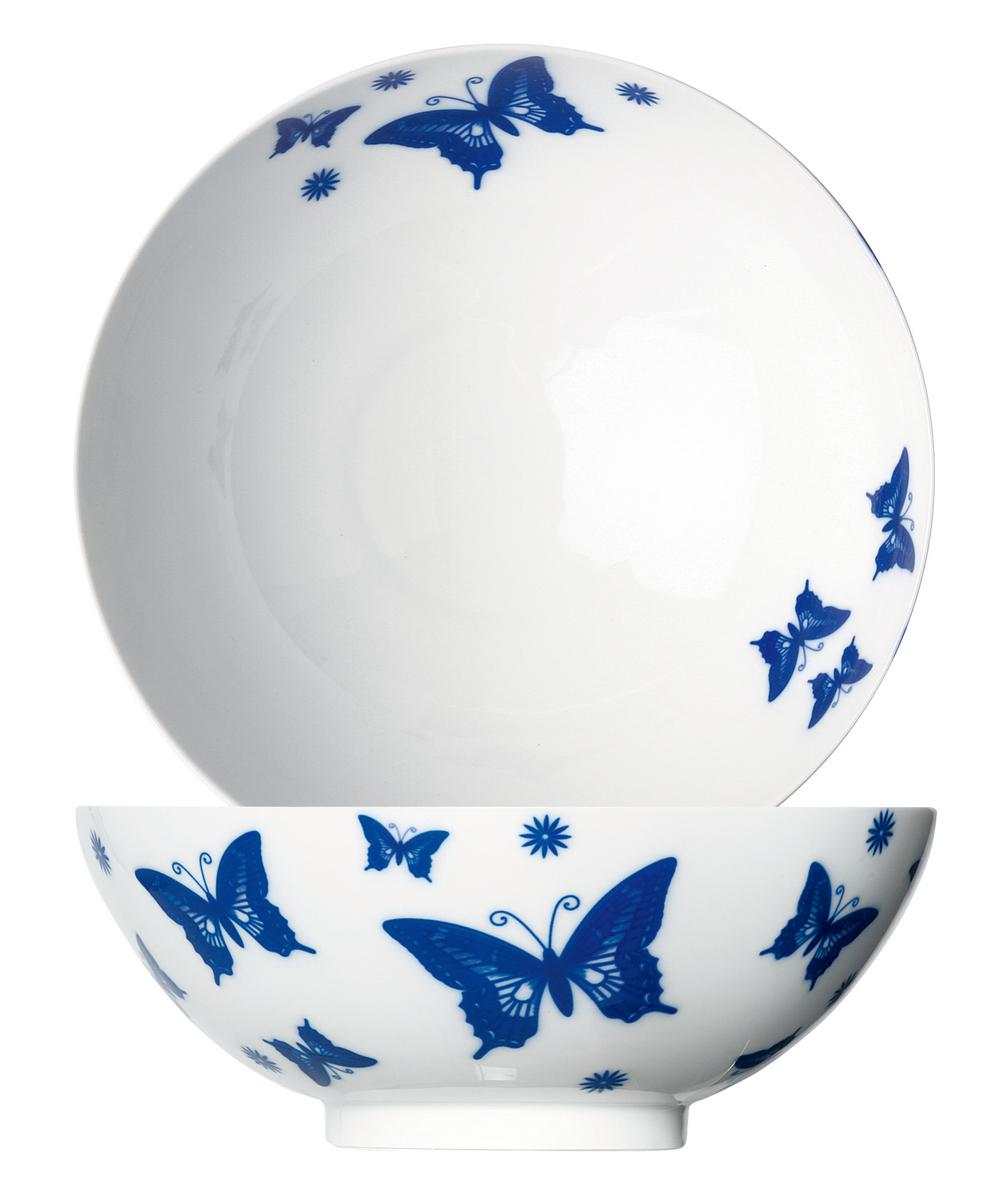 Das Tafelservice "Wunderkammer" von Sieger by Fürstenberg nimmt seine Betrachter mit auf eine fantastische Reise. In einem wundervollen Blauton sind Blumen und Schmetterlinge gestaltet, die sich um geometrische Figuren wie den Sieger Stern oder perfekt geformte Kreise ranken.