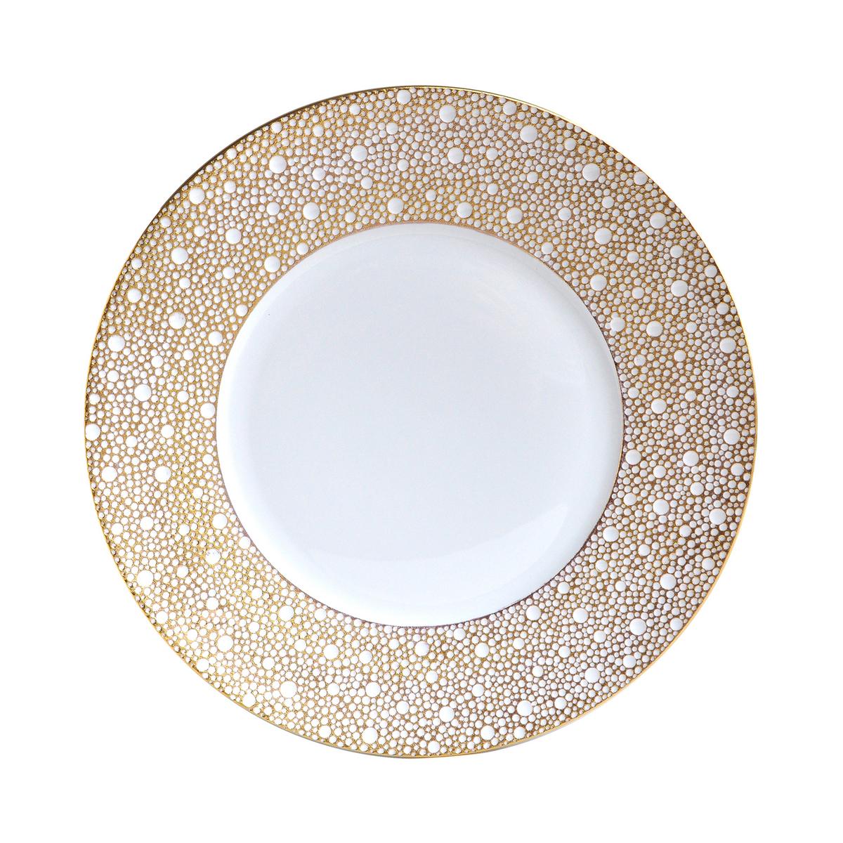 Mit einer hochwertigen Goldauflage hat die französische Porzellanmanufaktur Bernardaud einen ihrer Bestseller - das Service "Ecume Weiß" - zur Version "Ecume Mordoré" geadelt. "Ecume Mordoré" lässt sich nicht nur ideal mit "Ecume Weiß" sondern auch mit "Ecume Gold" kombinieren. Die neue Linie "Ecume Mordoré" weist die gleichen aufregenden Strukturen auf den Rändern der Teller auf. Bei der Gestaltung des feinen Limoges-Porzellans stand das Meer Pate. Besser gesagt: die Spuren, die seine Wellen am feinem Sandstrand hinterlassen.