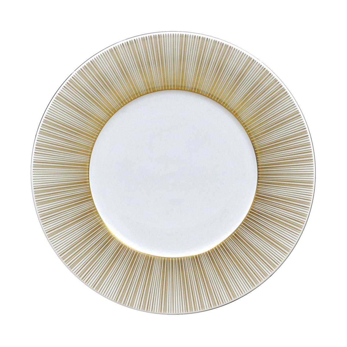 Die Formen des Tafelservice "Sol" von Bernardaud sind eigentlich schlicht und zurückhaltend. Dennoch hat das Service von Bernardaud eine enorme Präsenz und Ausstrahlung. Feine goldene Strahlen zieren die Teller und Tassen des Limoges-Porzellan Services "Sol". Trotz des auffälligen goldenen Dekors hat das Service "Sol" einen zeitlosen Charakter.