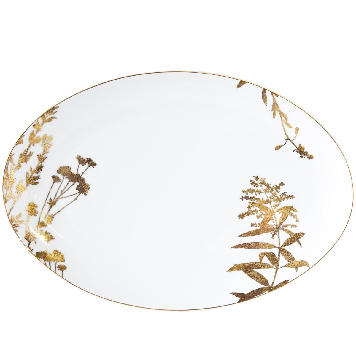 Aparte Zweige, Stängel und Blätter unterschiedlicher Pflanzen werden als wertvolle Goldauflage auf bestem Limoges-Porzellan inszeniert. "Vegetal Gold" präsentiert sein Dekor wie ein Herbarium aus Porzellan und Gold.