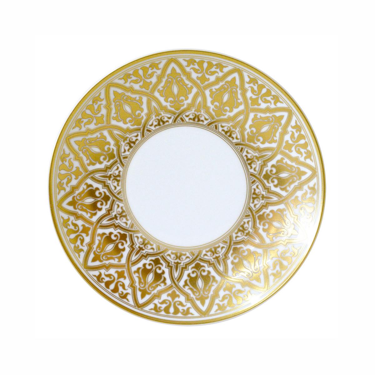 Das Dekor des Tafelservices "Venise" von Bernardaud könnte gut von den mondänen italienischen Stadtpalästen aus Venedig inspiriert sein. Durch die goldene Veredelung und die breiten goldgeschmückten Ränder wirkt das Service sehr kostbar und majestätisch. Das Tafelservice "Venise" wird in der historischen Porzellanmanufaktur Bernardaud aus feinstem Limoges-Porzellan gefertigt.