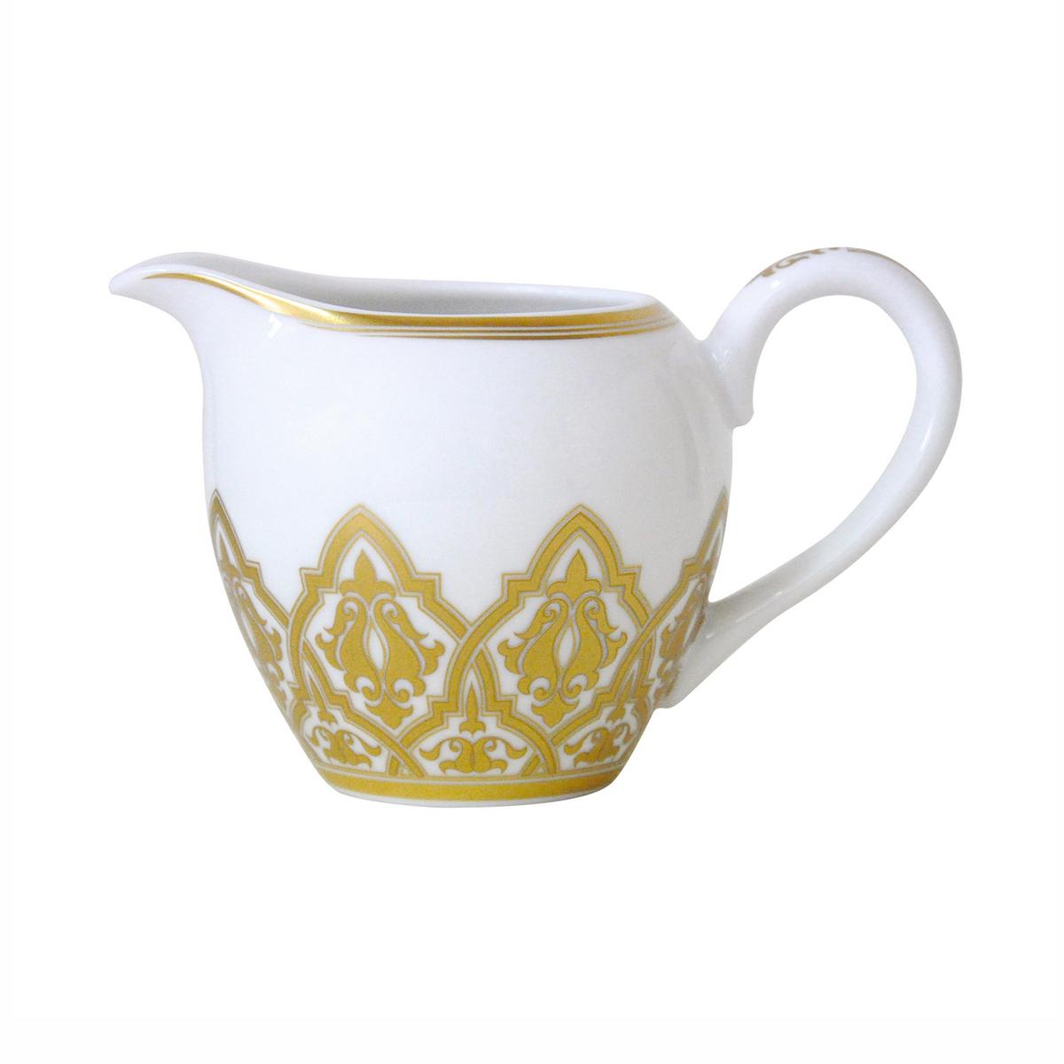Das Dekor des Tafelservices "Venise" von Bernardaud könnte gut von den mondänen italienischen Stadtpalästen aus Venedig inspiriert sein. Durch die goldene Veredelung und die breiten goldgeschmückten Ränder wirkt das Service sehr kostbar und majestätisch. Das Tafelservice "Venise" wird in der historischen Porzellanmanufaktur Bernardaud aus feinstem Limoges-Porzellan gefertigt.