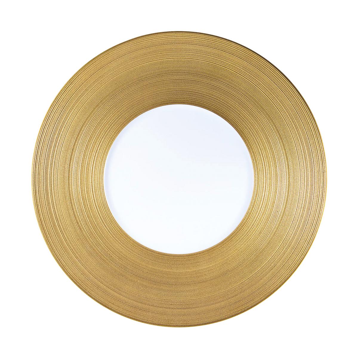 "Glanzvoller Mittelpunkt: Auf der festlichen Tafel darf ein Platzteller nicht fehlen. Er ist größer als ein Speiseteller und die Basis des Gedecks, auf den das Geschirr des jeweiligen Ganges gestellt wird. Einen goldfarbenen Rand hat der Platzteller aus dem Service Hémisphère Gold."