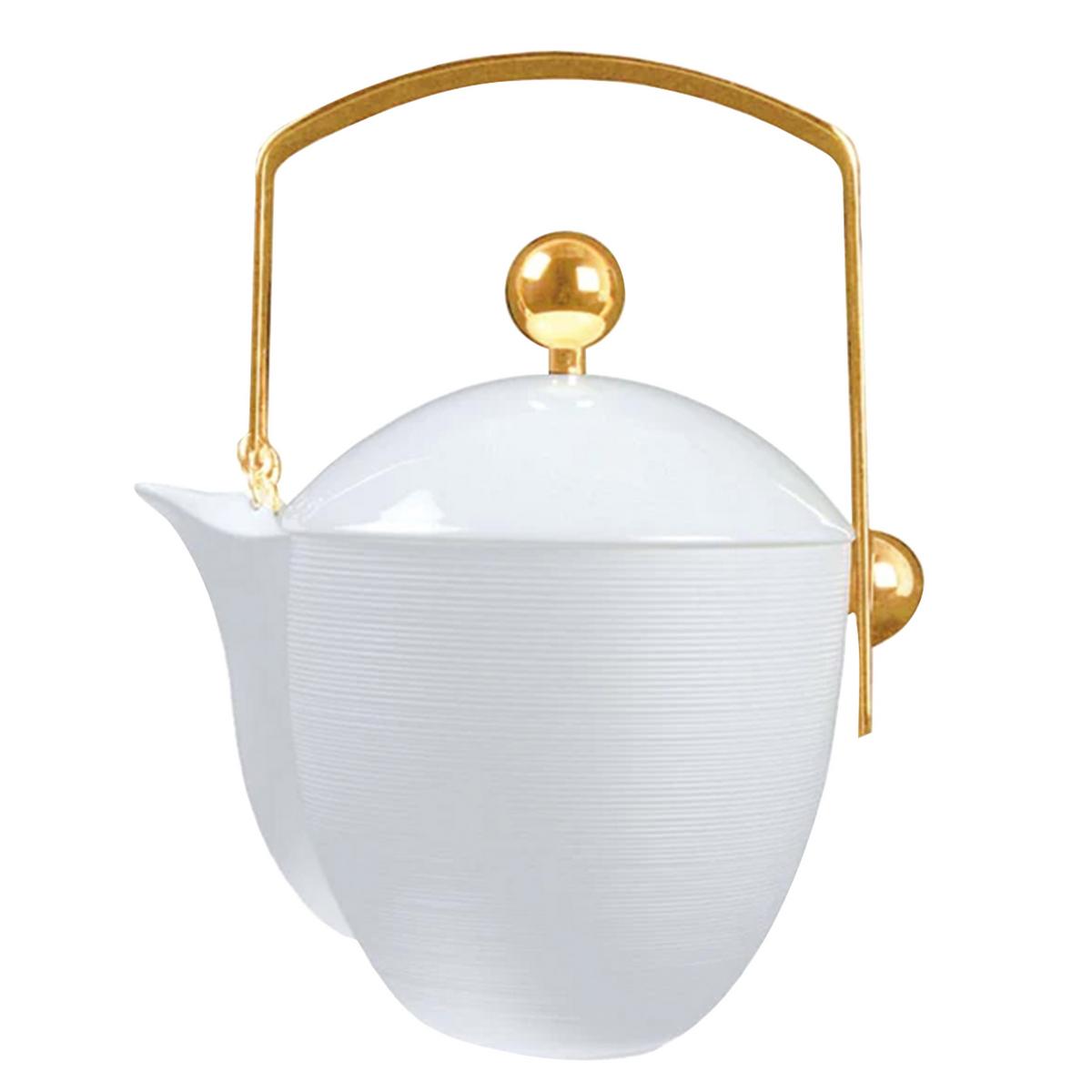 "Hémisphère Weiß" Teekanne, mit goldfarbenem Knopf und Henkel von J.L Coquet