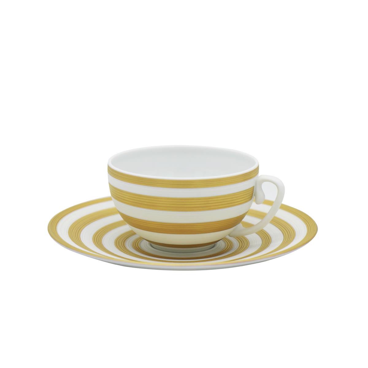 "Hémisphère gestreift, Gold" Teetasse mit Unterteller von J.L Coquet