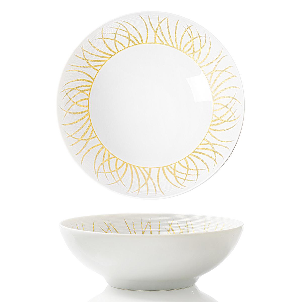Luxus ohne Kompromisse: Das Service "Toundra" ist ein weiteres kleines Kunstwerk aus zartem Limoges-Porzellan, das von der Manufaktur J.L Coquet in reiner Handarbeit hergestellt wird. Die Teller, die auf der Form "Hémisphère" basieren, zeichnen sich durch extrabreite Ränder aus, die zart strukturiert sind. Teile des Dekors "Toundra", das an zarte Gräser erinnert, können Sie hervorragend mit goldenen Tellern aus dem Service "Hémisphère" kombinieren. Bei den Tassen gibt es ebenfalls zwei Kombinationsmöglichkeiten: entweder Tasse und Unterteller im Dekor "Toundra" oder Tasse "Toundra" auf einem Unterteller "Hémisphère" mit reinem Goldrand. Jedes Stück des Services ist ein Unikat, das von Hand gefertigt wird.