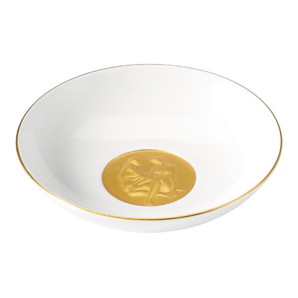 Der Schmuckteller wird in zwei Versionen angeboten: ganz in Weiß oder mit einer 24-karätigen Vergoldung am Rand und auf das Medaillon.
