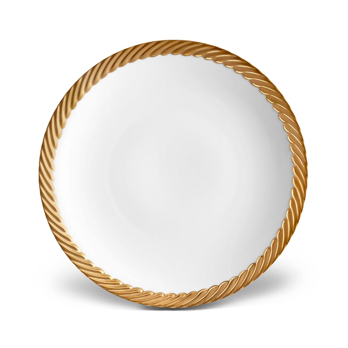 Der mit 24 karätigem Gold veredelte Rand verleiht dem sonst eher schlichten Service "Corde" von L'Objet eine aufsehenerregende Eleganz.
