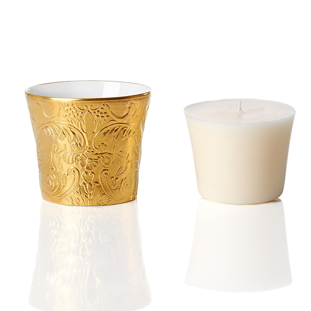 Die Kollektion "Italian Renaissance" von Raynaud ziert ein üppiges florales Dekor. Dieses Dekor ist angelehnt an Wandverkleidungen aus dem 19. Jahrhundert, mit denen die bekanntestes Residenzen und Adelshäuser, zum Beispiel der Buckingham Palace, ausgestattet wurden. Raynaud arbeitete mit der englischen Marke Lincrusta® zusammen, die seit 1877 für Wandbespannungen mit opulenten und tiefen Prägungen bekannt ist.