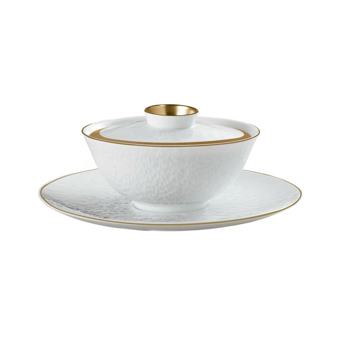 "Minéral Gold" Chinesisches Suppenschälchen mit Deckel und Unterteller von Raynaud
