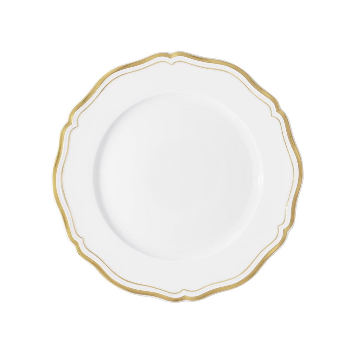 Das Tafelservice "Polka Gold" von Raynaud glänzt im berühmten Weiß des Limoges-Porzellans mit goldener Veredelung an den Rändern. Das weiße Service ist mit einem doppelten handgemalten Rand in Gold eingerahmt. "Polka Gold" ist ein Klassiker von Raynaud und lässt sich wunderbar mit anderen Raynaud Servicen mischen bzw. erweitern. Auf den Bildern wurde "Polka Gold" mit "Aura" von Raynaud kombiniert. Diese Kombination wirkt sehr edel und setzt reizvolle Akzente auf dem Tisch.