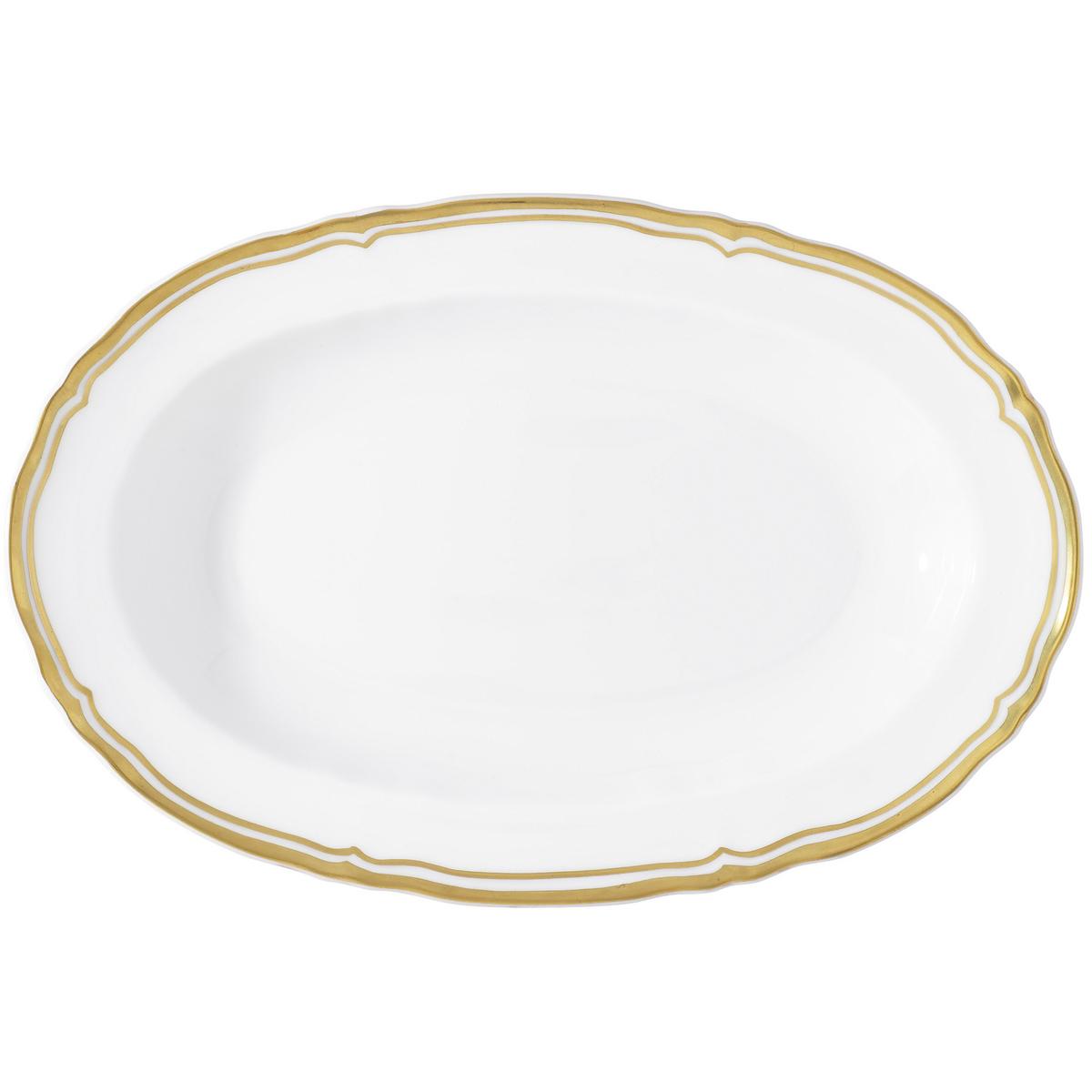 Das Tafelservice "Polka Gold" von Raynaud glänzt im berühmten Weiß des Limoges-Porzellans mit goldener Veredelung an den Rändern. Das weiße Service ist mit einem doppelten handgemalten Rand in Gold eingerahmt. "Polka Gold" ist ein Klassiker von Raynaud und lässt sich wunderbar mit anderen Raynaud Servicen mischen bzw. erweitern. Auf den Bildern wurde "Polka Gold" mit "Aura" von Raynaud kombiniert. Diese Kombination wirkt sehr edel und setzt reizvolle Akzente auf dem Tisch.