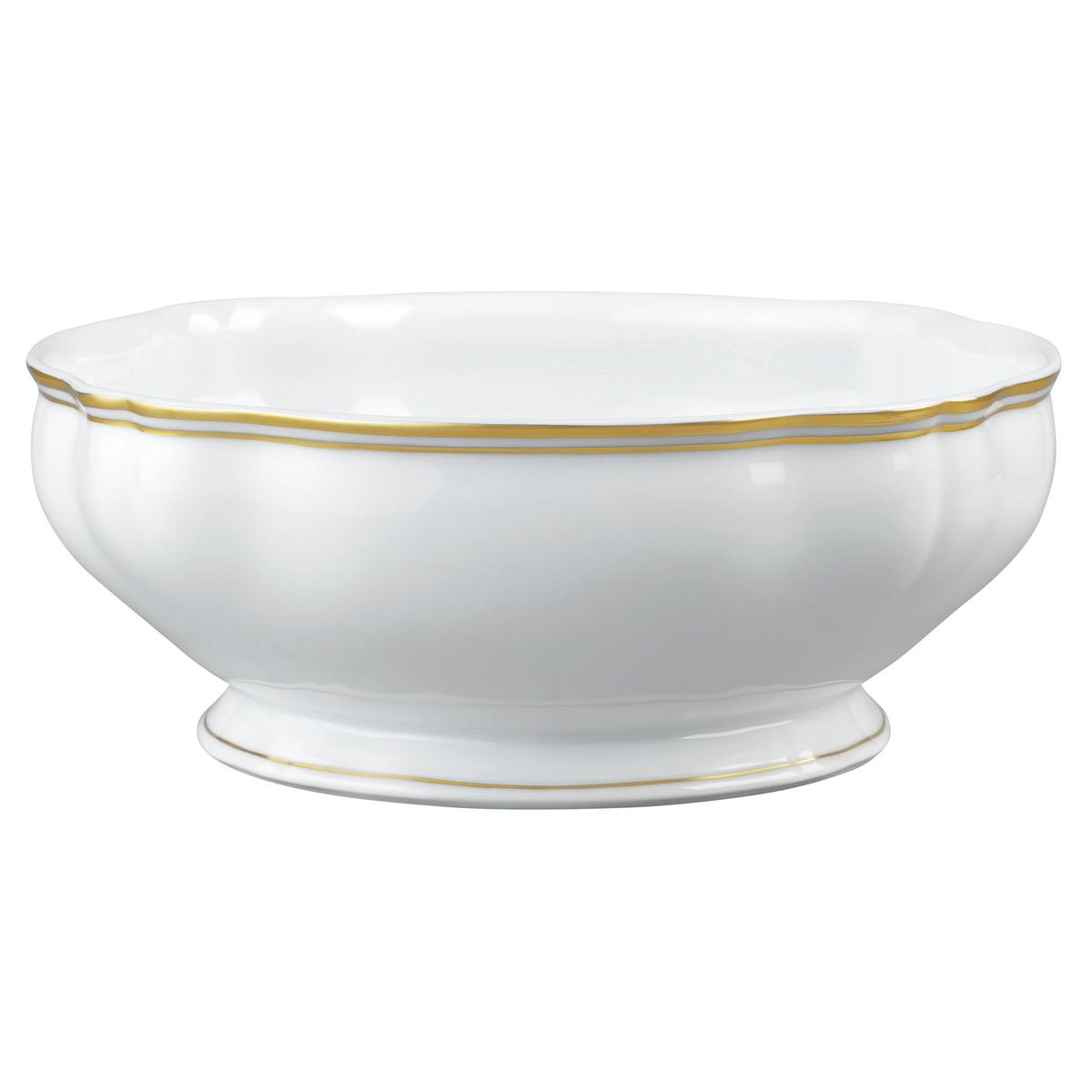 Das Tafelservice "Polka Gold" von Raynaud glänzt im berühmten Weiß des Limoges-Porzellans mit goldener Veredelung an den Rändern. Das weiße Service ist mit einem doppelten handgemalten Rand in Gold eingerahmt. "Polka Gold" ist ein Klassiker von Raynaud und lässt sich wunderbar mit anderen Raynaud Servicen mischen bzw. erweitern. Auf den Bildern wurde "Polka Gold" mit "Aura" von Raynaud kombiniert. Diese Kombination wirkt sehr edel und setzt reizvolle Akzente auf dem Tisch.